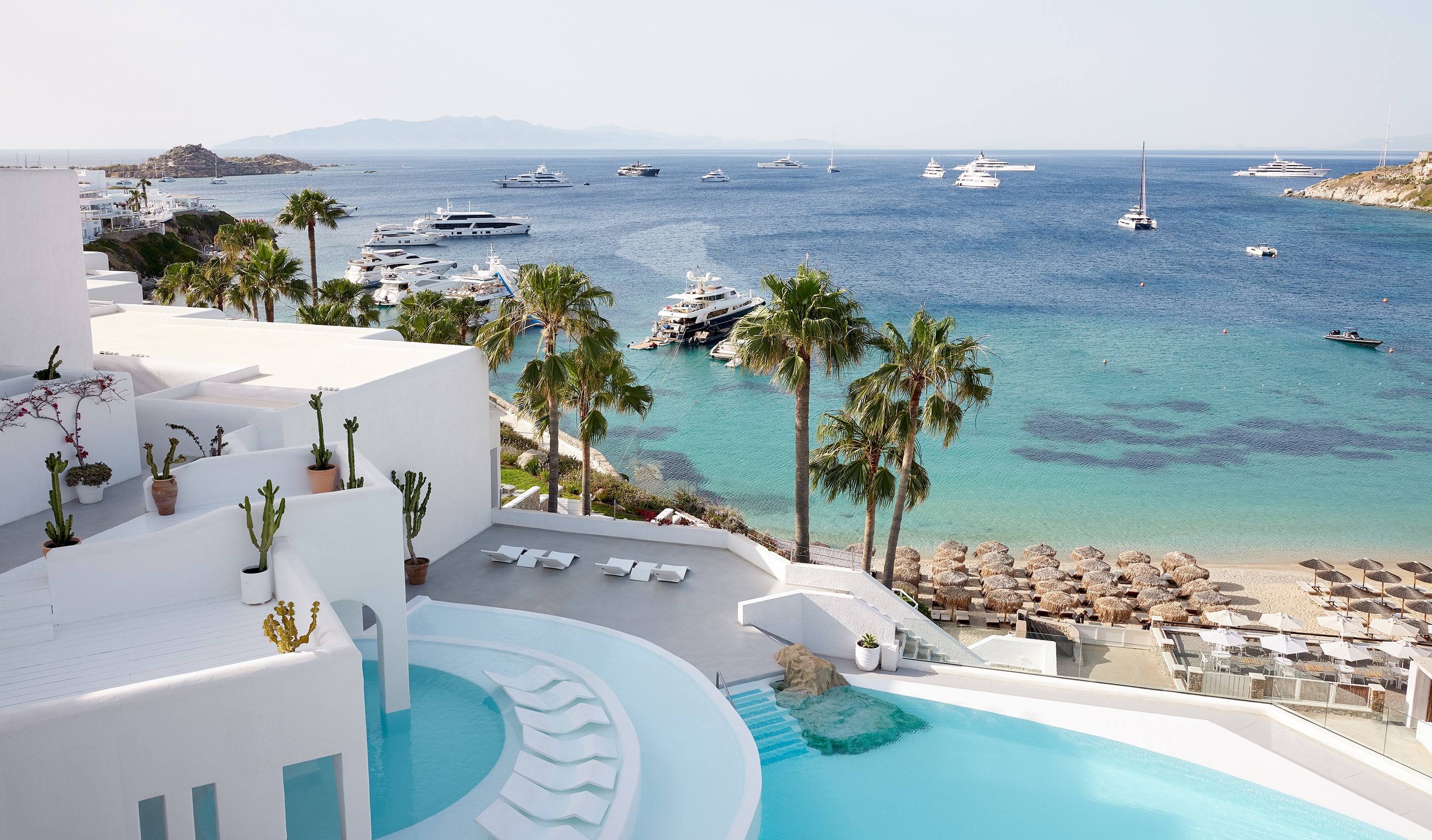 Mykonos Blu (Mykonos): Unique Cycladic with its whitewashed villas, this retreat overlooks world-famous Psarou Beach. Couples and style-seekers flock here for its private beach access, romantic ambience, and chic spa treatments. Its mix of seclusion and proximity to Mykonos town means you can enjoy both tranquil luxury and vibrant nightlife. Sunsets from the terrace are unforgettable, adding to its reputation as one of Greece’s most glamorous beach escapes.